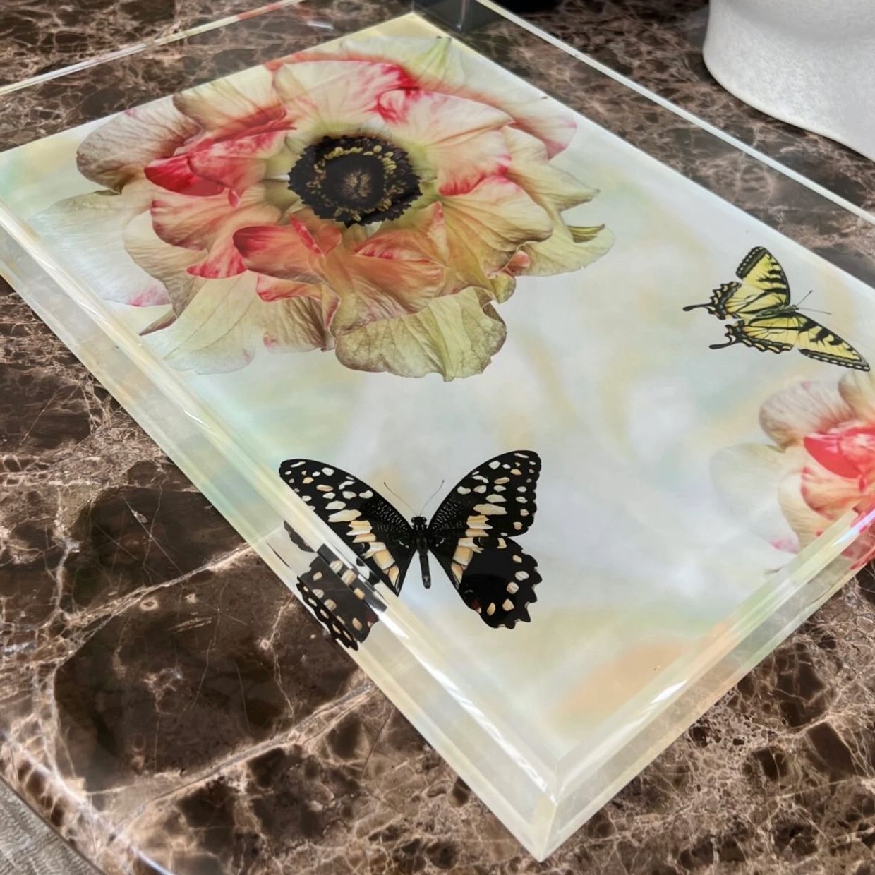 These unique compositions are printed onto either custom-made Lucite furniture, tailored to your specifications, or carefully sourced vintage Lucite.